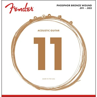 String Gauge 60CL: .011, .015, .023, .032, .042, .052 These phosphor bronze acoustic guitar strings deliver rich, warm tone with complex harmonics and excellent highs Whether you're a singer-songwriter, performing solo or playing with a full band, there's no better way to show your personality than with long-lasting strings that offer balanced acoustic tone Softer and more mellow voice ideal for intimate acoustic performances. Hex core construction creates more brightness along with a faster pick attack Ball-end design with classic Fender colours help make string changes a breeze