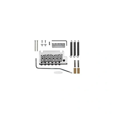 Six powder-coated steel block saddles with off-center intonation screws Screw-in tremolo arm with white tip included Mounting hardware and adjustment wrenches included 2-7/32" (2.220") mounting and modern 2 1/16" (2.0625") string spacing Used on American and American Standard series Stratocaster models (1986-2007)