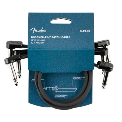 Fender Blockchain 12" Patch Cable, Guitar Accessories, 3 Pack, Angle/Angle