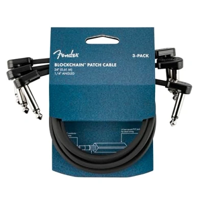 Fender Blockchain 24" Patch Cable, Guitar Accessories, 3 Pack, Angle/Angle