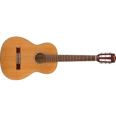 The ¾-size nylon-string FA-15N guitar offers a visually stunning instrument at a budget-friendly price. Quality laminate construction with a modern Fender 3+3 headstock and walnut bridge create an instrument that is not only easy to play, but also sounds great. Beginners and developing players will appreciate the style of this guitar, which features a mahogany neck that gives the guitar a lively tone and feel. This traditional smaller body size is ideal for children, beginners and players with smaller hands, yet still offers full-size tone and performance. This guitar combines the easy playability and distinct tone of nylon strings with the comfort of a narrower string spacing for a best-of-both-worlds feel.
