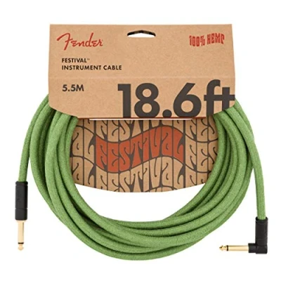 FOR YOU: 1x Festival Cable – 18.6 Ft – STR/ANG - Green YOUR USE: Crafted From Materials – 100% Hemp YOUR PERFORMANCE: Superior Sound – Exclusive Limited Edition Style BEST MATERIALS: 24k gold-plated connectors - 95% OFC spiral shield