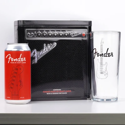 Elevate your beer-drinking experience with the Fender Amp Tin Craft Lager and Pint Glass set! This unique gift set features a delicious Fender plug-in craft lager alongside a stylish Fender pint glass, all beautifully packaged in a cool Fender box. Perfect for music enthusiasts and beer lovers alike, this set is sure to strike a chord at any gathering. The Fender plug-in craft lager offers a crisp, refreshing taste that pairs perfectly with jamming out to your favourite tunes or enjoying a relaxed evening with friends. The pint glass, emblazoned with the iconic Fender logo, enhances the drinking experience while celebrating the legacy of rock ‘n’ roll. It's a perfect way to honour the legendary Twin Reverb amp while sipping on a brew that hits all the right notes. Ideal for gifting or treating yourself, the Fender Amp Tin set makes an excellent addition to any collection. Whether you’re a seasoned musician or just someone who appreciates good taste, this set invites you to enjoy great music and even better beer. Rock on and raise your glass with this harmonious blend of flavour and style!