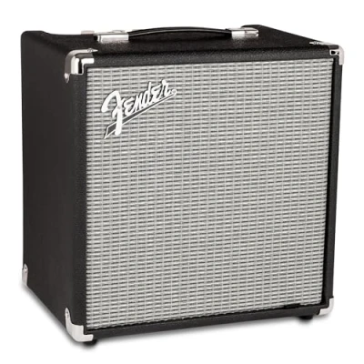 The Fender Rumble 25 bass Amp is suitable for electric bass guitars; This compact yet powerful guitar amp includes an 8” Fender special design speaker, delivering classic Fender tone and performance Ideal for beginners and intermediate players, the Fender Rumble 25 amplifier stands out with its sleek black and silver design; The overdrive switch provides a gritty, aggressive tone, setting it apart from other amps in its class The Rumble 25 features a top-mount control panel with ivory “soft touch radio” control knobs for easy adjustments; You can instantly add rich, satisfying overdriven tones to your sound, giving you versatile control over your music Equipped with a 1/8" stereo auxiliary input, this amp allows easy connectivity with digital media players and similar devices; It also includes a headphone output jack for personal listening, ensuring you can practice quietly without disturbing others Weighing just 21 pounds, the Fender Rumble 25 is lightweight and portable, perfect for practice, at-home use and coffeehouse gigs; Trust in Fender's 75-year legacy of quality and craftsmanship