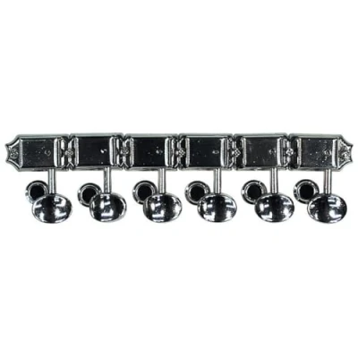 Fender Accesories Strat/tel original vnt mchhds/6 Electric Guitar Part Country of Origin: United States 6 in line tuners for many original Fender 6 string instruments from the 50’s to current re issues.18:1 gear ratio for smooth and accurate tuning.Open hole tuner post for easy clip and wind of string.Includes 7 mounting screws and 6 headstock bushings.Bushings have .357" outside diameter (.250" inside diameter).Durable nickel plated finish