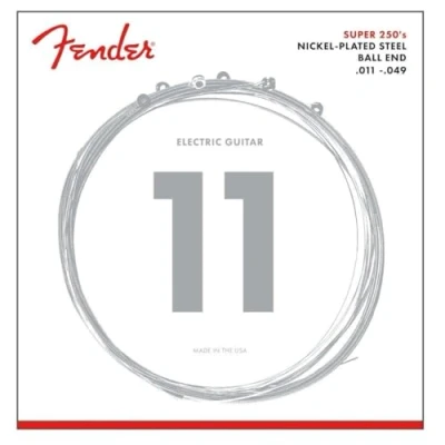 Fender Super 250 Guitar Strings for Electric Guitar, Nickel Plated Steel, Ball End, 250M Gauges .011 .049, (6)