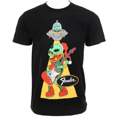 Fender is spreading holiday cheer across the universe with our new Alien Ugly Christmas T-shirt. You are ready to go to your next holiday party, family gathering or holiday gig in Fender's comfy muliti colored 100% cotton tee. Greetings and Rock On all of you Holiday Earthlings! 100% soft spun cotton 1 x Black t-shirt with Alien graphic