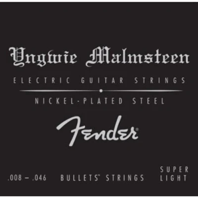String Gauge: .008, .011, .014, .022, .032, .046 Fender Yngwie Malmsteen Signature Electric Guitar Strings are custom designed with specific wrap ratios and Gauge to provide unparalleled speed, maximum tone and smooth playability. Made from the highest-quality nickel-plated steel and featuring Fender Bullets ends for more sustain and incredible tone, these strings are sure to unleash the fury through the most punishing performances. play the legend: fender - the worlds leading guitar manufacturer best quality: made in usa according to the latest technology!