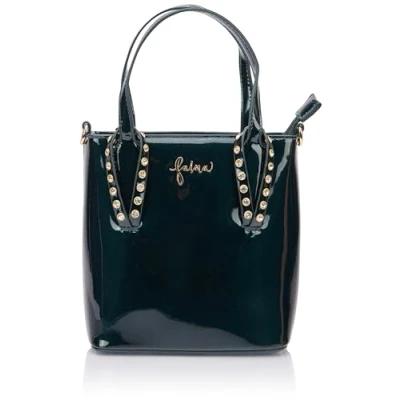 Feminine handbag Made of soft material Spacious inner compartment Gold accents Adjustable and removable carrying strap