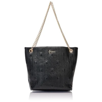 faux leather handbag Side drawstrings Long shoulder strap with chain detail Inner side made of textile