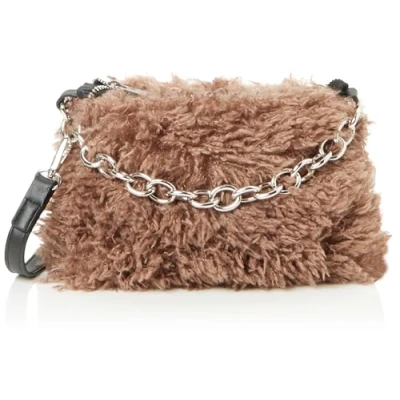 faux fur handbag Made from soft faux leather Zip closure Silver Link Chain Detachable and adjustable shoulder strap