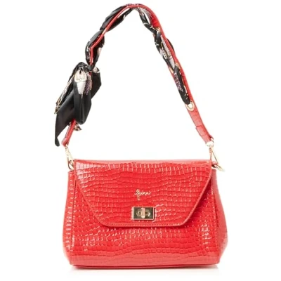 Feminine shoulder bag Faux leather with reptile embossing Spacious inner compartment Decorative cloth for removal Gold accents