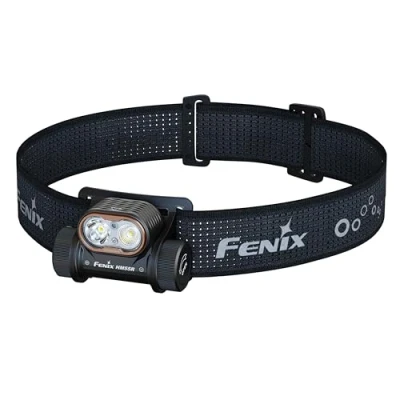 Fenix HM55R Black Rechargeable Compact Outdoor Headlamp 1200 Lumen 175m 141+ Hrs Max White Spot and Flood Beams 5lm Red Beam Single Button Operation IP68