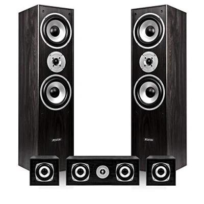 Fenton 5.0 Black Surround Sound Speakers Set 1150W Home Cinema Speakers, for TV, Hi Fi Audio System Wooden Tower Satellites Speaker