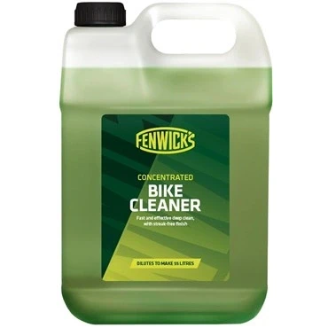 It’s economical too, as the 5 litre bottle will make 55 litres of Fenwick’s Bike Cleaner.Concentrates are now common place and marketed for all types of liquid products, the acceptance to embrace this concept is now here. Over the years our cleaners have been subtly improved, allowing us to use the same base materials to create the best, safest and most economical products that we trust in and so can you.Concentrated Bike Cleaner is a complex mixture of surfactants and sequestrants. Great to use as a water soluble degreaser. It may be diluted using 10 parts water to create a “ready to use” Bike Cleaner or used neat in chain baths as a chain degreaser. Concentrated Bike Cleaner works by attracting dirt, surrounding it and making it easy to rinse away.Fenwick’s Concentrated Bike Cleaner does not use solvents or acids (citrus) to be effective, resulting in a safe product to use. This simple concept works across all types of finishes, be it, matt, carbon or gloss, leaving a clean, contaminate free surface. Concentrated Bike Cleaner is biodegradable and safe to use on anodising, carbon, plastics, rubber and painted surfaces.