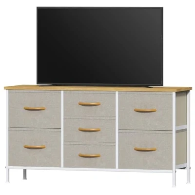 Feonase Bedroom Chest of Drawers, Small Dresser with 7 Fabric Metal Frame & MDF Wood Top, Adjustable Feet, Storage Organizer Unit for Bedroom, Closet, Living Room, Hallway, Khaki