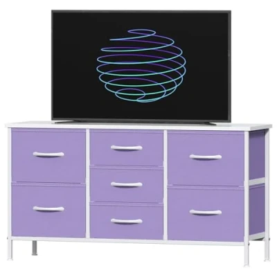 Feonase Bedroom Chest of Drawers, Small Dresser with 7 Fabric Metal Frame & MDF Wood Top, Adjustable Feet, Storage Organizer Unit for Bedroom, Closet, Living Room, Hallway, Purple