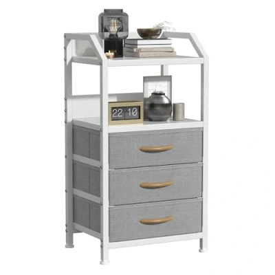 Feonase Bedside Table 40cm Wide with 3 Fabric Drawers & Open Shelf Suitable For Bedroom Bed Side Tables, Sofa and Small Living Room Spaces Light Grey