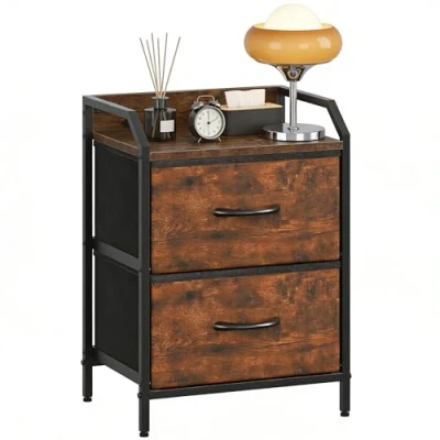 Feonase Bedside Table With 2 Storage Fabric Drawers, Cabinet 40cm Wide Sturdy Metal Frame, Bed Side for Bedroom & Living Room Modern, Rustic Brown