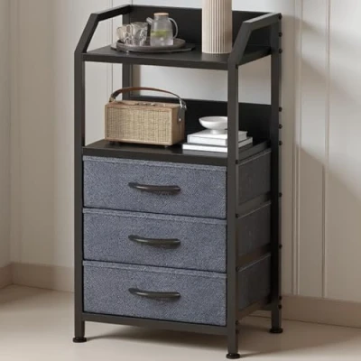 Versatile Design: This contemporary chest of drawers blends seamlessly into any room, offering a sleek storage solution perfect for bedrooms, living areas, hallways, studies or even your wardrobe. Ample Storage: With three soft-close fabric drawers, it keeps your bits and bobs neatly out of sight. The handy open cubby and wooden top provide a handy spot for lamps, books, or bedtime essentials. Robust Build: Designed to last, it features a strong steel frame, a particleboard top, and sturdy MDF-based drawers wrapped in durable non-woven fabric. The top can support up to 30 kg, with each drawer holding up to 5 kg. Steady & Secure: Adjustable feet keep it level on uneven floors, while the included anti-tip kit adds extra safety—ideal for households with children or pets. Easy to Assemble, Clear Instruction: All parts and accessories are numbered, and each step of the installation has detailed instructions, easy to understand and to assemble. In addition, if you have any product problems, please contact us in time, all problems will be solved within 24 hours.