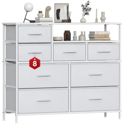 Feonase Chest of Drawers Bedroom, 8 Fabric with 2Top Open Shelves, Suitable for Bedrooms, Living Rooms(White)