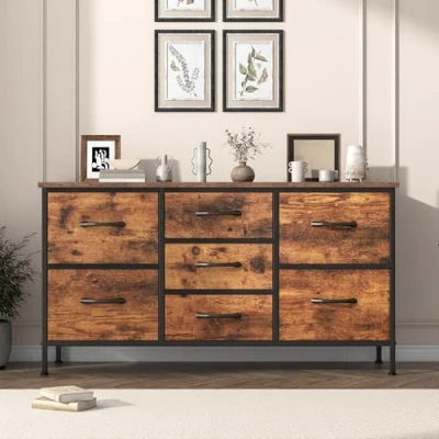 Feonase Chest of Drawers,Bedroom Dresser with 7 Fabric Drawers, Metal Frame & MDF Wood Top, Adjustable Feet, Storage Organizer Unit for Bedroom, Closet, Living Room, Office Hallway, Rustic Brown