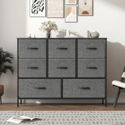 Feonase Chest of Drawers,Bedroom Dresser with 8 Fabric Drawers, Metal Frame & MDF Wood Top, Adjustable Feet, Storage Organizer Unit for Bedroom, Closet, Living Room, Office Hallway, Deep Grey