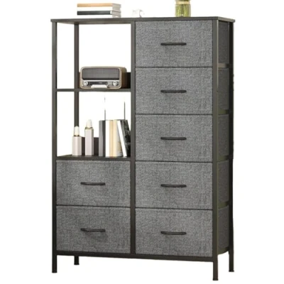 【Large-Capacity Layered Storage】This chest of drawers is equipped with 7 fabric drawers and 2 Open shelves, creating a three-dimensional storage space. The drawers allow for organized storage of clothing, miscellaneous items, and other scattered belongings, while the flat top surface serves both as a display area and a functional space for placing table lamps, photo frames, and decorative items. It effectively solves the problems of disorganization and cluttered storage. 【Sturdy and Safe Materials】The chest of drawers bedroom features soft, breathable fabric drawers that prevent clothes from getting scratched. Combined with a sturdy steel frame and a wooden top surface, it offers a solid structure with stable weight-bearing capacity. The adjustable feet allow it to adapt to slightly uneven floors. Whether used for heavy items or in households with children, it ensures reliable stability and safety, balancing practicality and care. 【Versatile and Flexible Application】 With its simple design that suits any style, this storage cabinet can be flexibly used in various spaces—storing clothes in the bedroom or dressing room, displaying plants and decorations in the living room, organizing stationery and documents in the study, or serving as an entryway console or hallway storage cabinet. 【Simple and Stylish Design】Designed in a minimalist modern style, this cabinet easily complements a variety of home decor aesthetics. The raised back guardrail on the top prevents items from falling and also functions as a carrying handle, adding practical detail. Its compact size saves space and allows it to blend seamlessly into any room. 【Easy Self-Assembly】The package includes detailed illustrated assembly instructions, with all parts clearly marked with letters and numbers for easy identification. The steps are simple and easy to follow, allowing one person to complete the assembly independently. Should you encounter any issues, please feel free to contact us—we are committed to providing a satisfactory solution within 24 hours.
