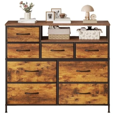【Large-Capacity Layered Storage】This chest of drawers is equipped with 8 fabric drawers and 2 spacious shelves, creating a three-dimensional storage space. The drawers allow for organized storage of clothing, miscellaneous items, and other scattered belongings, while the flat top surface serves both as a display area and a functional space for placing table lamps, photo frames, and decorative items. It effectively solves the problems of disorganization and cluttered storage. 【Sturdy and Safe Materials】The chest of drawers bedroom features soft, breathable fabric drawers that prevent clothes from getting scratched. Combined with a sturdy steel frame and a wooden top surface, it offers a solid structure with stable weight-bearing capacity. The adjustable feet allow it to adapt to slightly uneven floors. Whether used for heavy items or in households with children, it ensures reliable stability and safety, balancing practicality and care. 【Versatile and Flexible Application】 With its simple design that suits any style, this storage cabinet can be flexibly used in various spaces—storing clothes in the bedroom or dressing room, displaying plants and decorations in the living room, organizing stationery and documents in the study, or serving as an entryway console or hallway storage cabinet. 【Simple and Stylish Design】Designed in a minimalist modern style, this cabinet easily complements a variety of home decor aesthetics. The raised back guardrail on the top prevents items from falling and also functions as a carrying handle, adding practical detail. Its compact size saves space and allows it to blend seamlessly into any room. 【Easy Self-Assembly】The package includes detailed illustrated assembly instructions, with all parts clearly marked with letters and numbers for easy identification. The steps are simple and easy to follow, allowing one person to complete the assembly independently. Should you encounter any issues, please feel free to contact us—we are committed to providing a satisfactory solution within 24 hours.
