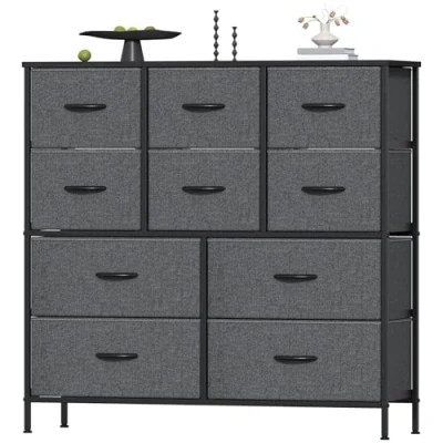 Feonase Chest of Drawers, Bedroom Tall Dresser with 10 Fabric Metal Frame & MDF Wood Top, Adjustable Feet, Storage Organizer Unit for Bedroom, Closet, Living Room, Hallway, Deep Grey