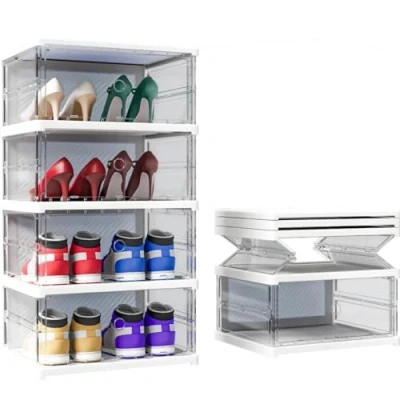 【Easy Access & Convenient Design】Transparent magnetic design for instant shoe locating, no rummaging needed. 【Space-Saving】Interlocking grooves for stable stacking, fits UK 12 men’s shoes. 【60s Quick Assembly & Foldable】Tool-free setup, flat-foldable for storage/portability. Sturdy & Breathable】Thickened PP+PET plastic, ventilated panels keep shoes fresh. 【Stylish Multifunctional & Multi-Functional Use】Multi-scene storage, decor-matching design with modern aesthetic.