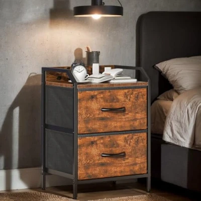 Feonase Nightstand With Large Capacity Fabric Bedside Drawers,Bedside Tables, Cabinets, Metal Frame Wooden Top, 2 Drawer Storage Bed Side Table For Bedroom (Vintage Brown)