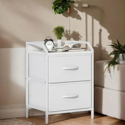 Feonase Nightstand With Large Capacity Fabric Bedside Drawers,Bedside Tables, Cabinets, Metal Frame Wooden Top, 2 Drawer Storage Bed Side Table For Bedroom (White)