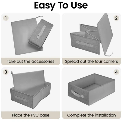 ManoManoDescription: Keep your home organized with our stylish fabric storage boxes! Tired of cluttered drawers and overflowing closets? Our 4-pack of foldable storage boxes provides a stylish and practical storage solution for organizing clothes, books, magazines, and more. Specifications: Material: Non-woven fabric Dimensions: 39 x 28.5 x 14 cm (15.35 x 11.22 x 5.51 inches) Quantity: 4 pcs Color: Gray, Beige Package Includes: 4x Fabric Storage Boxes