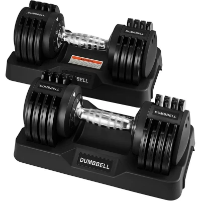 Description: Discover the freedom of customisable strength training at home with this space-saving adjustable dumbbell. Designed for versatility, durability, and ease of use, its an all-in-one solution for full-body workouts. Product Features: 5-in-1 adjustable weight Easily switch between 5 weight settings to match your training intensity. Quick weight change Adjust weights in just 1 second by turning the handle. Secure locking system Click-lock mechanism ensures safe and stable lifting. Compact & space-saving Replaces multiple dumbbells with one smart design. Ideal for strength training, fitness, toning, and home workouts. Product Information: Dimensions: 13.2'' × 6.5'' × 6.3'' (33.5 × 16.5 × 16 cm) Included Accessories: 1 × Adjustable Handle 8 × Weight Plates 1 × Weight Base Material: High-quality silicon steel + anti-slip chrome handle Weight Range: (Specify if available e.g., 2kg to 12kg) This adjustable dumbbell set is perfect for those looking to build muscle, improve