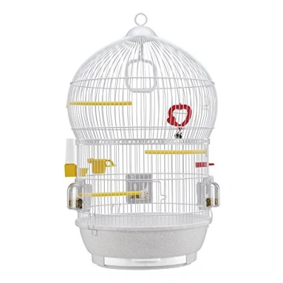 IDEAL HABITAT: Bird Cage with 9.8 mm Bar Spacing, suitable for Canaries, Budgies, Finches; resistant and spacious construction for a protected and safe environment. PRACTICAL and FUNCTIONAL: The bottom of this Bird Cage is equipped with 2 removable trays for easy cleaning; The BRAVA rotating feeder is unique and innovative because it can be filled without being removed. ITALIAN DESIGN: Ferplast is an Italian company and this Cage was entirely designed in Italy with the utmost care and that attention to detail that distinguishes Made in Italy. ACCESSORIES INCLUDED: 3 BRAVA 1 revolving feeders, 1 drinker, a bowl and a food holder guarantee the necessary food and water for various specimens; 3 perches and 1 swing provide enough space for rest. Mirror included. Stand available separatly. OVERALL DIMENSIONS: 43.5 x 43.5 xh 68.5 cm. SPACE BETWEEN BARS: 9.8mm. BAR DIAMETER: 1.5 - 3 mm.