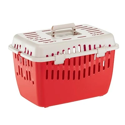 Dog and cat carrier in sturdy recycled plastic with coloured bottom. Opening roof complete with safe closure preventing accidental opening. Ideal for short trips with your pet. Top and sides with ventilation grilles for a comfortable, well-ventilated environment. Easy cleaning and maintenance. Handle to facilitate transport, foldable: it must be placed inside the compartment in the lid to take up less space Recommended optional: nylon shoulder strap with padding for carrying on the shoulder, adjustable. The shoulder strap is inserted into the holes on the lid of the pet carrier. This Binny 1 version is ideal for cats, small dogs and rabbits. Overall dimensions: 43.5 x 29.5 x h 29 cm. Maximum capacity 5 Kg. Also available in other models.