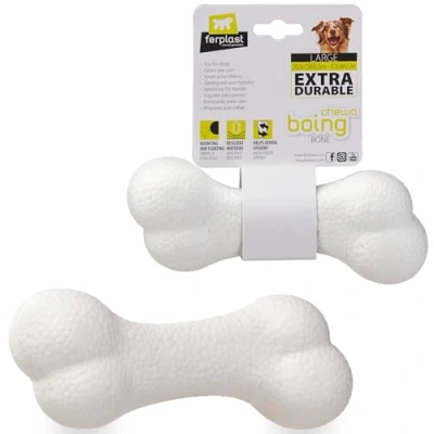 Ferplast CHEWA BOING BONE Dog Toy Super Bouncing & Floating Innovative Chewing Resistant Material 3D Texture for Dental Hygiene Ultra Durable Italian Design Size L, White