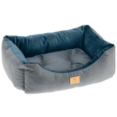 Ferplast Dog Bed Cat CHESTER 80, with Double sided Cushion, Tweed and Velvet, Washable, Blue, 78 x 56 22 cm