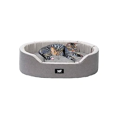 Dog and cat bed in soft cotton with internal padding, removable cushion. Sanitized permanent antibacterial and antiviral treatment integrated into the fabric. Reduction of bacteria > 99.99% certified by laboratory tests: no bad smells, maximum hygiene and freshness. It does not allow viruses to survive on the fabric. The hygienic treatment resists over time and intense use. Reduction of the number of washes and consumption of detergent, hygiene already at low temperatures. The cot is available in different sizes: 45, 55, 65 and 80. Machine washable at 30°. Model recommended for small dogs or cats. Overall dimensions: 55 x 41 xh 15 cm.