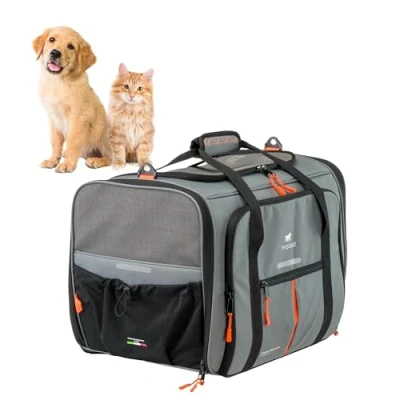 MODERN DESIGN AND OPTIMAL COMFORT Voyager is a cat carrier and dog carrier with a modern design designed for maximum comfort, safety and practicality. Perfect for short trips or long journeys, it adapts to the needs of every pet owner. QUALITY AND PRACTICALITY Made with resistant and durable materials, the bag is equipped with a comfortable adjustable shoulder strap that allows it to be used both by hand and on the shoulder. The internal strap guarantees the safety of your pet, preventing accidental escapes. FUNCTIONAL Equipped with two external pockets, it is ideal for storing essential accessories such as leashes, snacks or toys. The safety net on the top offers optimal ventilation and protection, allowing the animal to enjoy the view. DURABLE AND EASY TO CLEAN MATERIALS Made of scratch-resistant fabric, the Voyager bag is designed to last and is easy to keep clean. DIMENSIONS AND COLORS Available in two colors and two sizes. Max. load capacity up to 15 kg Voyager Carrier 350: dimensions 45 x 30 xh 33 cm Voyager Carrier 450: dimensions 50 x 33 xh 37 cm. Choose the size that best suits your pet.