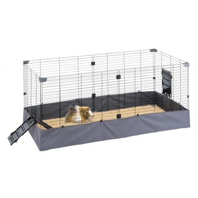 IDEAL SMALL ANIMAL PLAYPEN FOR GUINEA PIGS: Guinea pig cage and pet playpen with a robust metal wire structure to ensure your pet's safety. Suitable for both indoor and outdoor use. WATERPROOF AND ABRASION-RESISTANT FABRIC BOTTOM: Indoor guinea pig cage with a dual function machine washable bottom, that can be used outdoors also as sun protection. This cage is designed to effectively contain waste and dirt, ensuring optimal hygiene and cleanliness. VERSATILE AND EASY TO ASSEMBLE - Modular guinea pig enclosure that occupies little space when not in use. Includes accessories: 2 plastic doors and an extra door with hinges to create a practical bridge. Fully open roof for easy access and interaction with your pet. COMMITMENT TO SUSTAINABILITY: made with recycled materials, this pen for small animals, guinea pigs, and piglets reflects Ferplast's commitment to protecting the environment and the well-being of our animals. ITALIAN DESIGN: Europe's largest manufacturer of pet products with over 50 years of experience. From innovative design to dedicated customer service, Ferplast is committed to sustainability, innovation and maximum comfort for your pets.