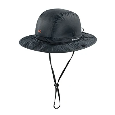 Polyester fabric with breathable membrane Excellent protection from sun and rain Adjustable drawstring with elastic and barrel Side raised flap with Velcro system