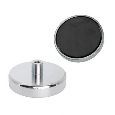 VERSATILE MAGNET FOR SEVERAL APPLICATIONS. Commonly used in Conveyor Systems, Switches, Speakers, Arts, Crafts, Science, and DIY. HIGH OPERATING TEMPERATURE. Can operate in temperatures up to 180 degrees Celsius. RESISTANT TO DEMAGNETISATION. Excellent resistance to demagnetisation. RESISTANT TO CORROSION. They have a high resistance to corrosion without any extra coating. STRONG RARE EARTH MAGNET. 60kg maximum pull from the magnetic surface when in flush contact with a mild steel surface of equal thickness to the magnet. SPECIFICATIONS. 80mm diameter x 32mm thick with an M10 15mm deep threaded collar. Chrome plated steel shell. M10 threaded collar for assembly.