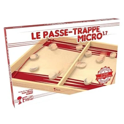 The hatchway commonly referred to as table has elastic bands Speed, skill, nerves of steel!! ! From 4 to 104 years - for 2 players 10 min Material: 1 printed tray 22x35cm, 10 pucks, 2 rubber bands, The rules of the game, Manufacturer: Ferti Games