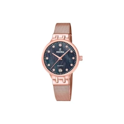 Festina Ladies Rose Gold PVD Plated Watch with Zirconia Sets and Mesh Bracelet F20716/2