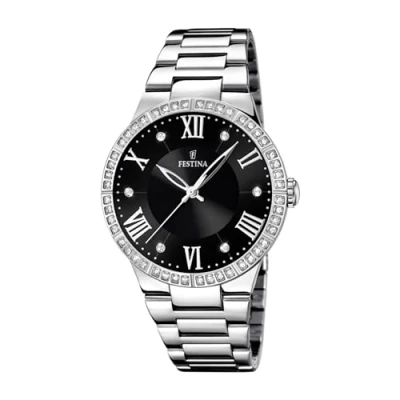 Festina Women's Quartz Watch with Black Dial Analogue Display and Silver Stainless Steel Bracelet F16719/2
