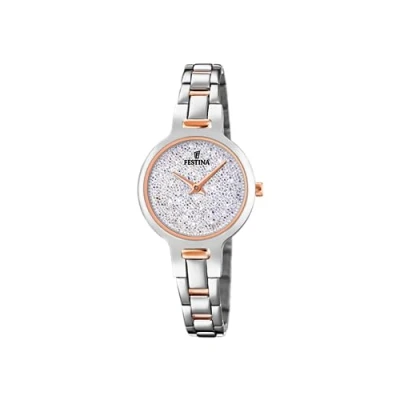 Case: stainless steel silver Strap: stainless steel silver / rose gold, multi-limbed Dial: pink gold hands, without second hand, no index, Festina logo Water resistance: 5bar Movement: quartz