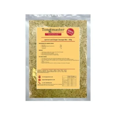 A combination of fruity apricot and warm ginger - ideal for the festive season! Use 100g mix per 800g minced meat, includes rusk. This pack will make 1kg of sausages. Use with beef, chicken, pork, lamb or alternative! Simply add this seasoning to minced meat & water. Fill the sausage meat into collagen or natural casings using vegetable oil for a professional sheen. The colder the meat and water, the better the appearance and life of the sausage. Leave sausage meat in the fridge overnight to allow the herbs and spices to marinade with the meat. Fill using a sausage stuffer machine.