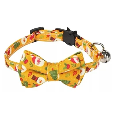 Beautiful Festive Christmas Cat Collar with Adorable Bow Tie [ADJUSTABLE] - Each collar is fully adjustable - to enable it to fit all size cats! [QUICK RELEASE] - Featuring a Quick Release Safety Buckle - If your pet encounters danger while exploring, the safety buckle will release quickly to protect the safety of your cat! [CUTE BOW TIE] - These collars feature a cute Bow Tie - The bow is connected to the collar with an elastic loop. The bow is removable and can be removed if preferred. [COMFORTABLE] - Made from a soft material, this collar is sturdy and long lasting & is very comfortable for your cat to wear. Each collar has a premium metal bell accessory to help protect wildlife and to help you locate your pet. The bell can be removed if preferred.